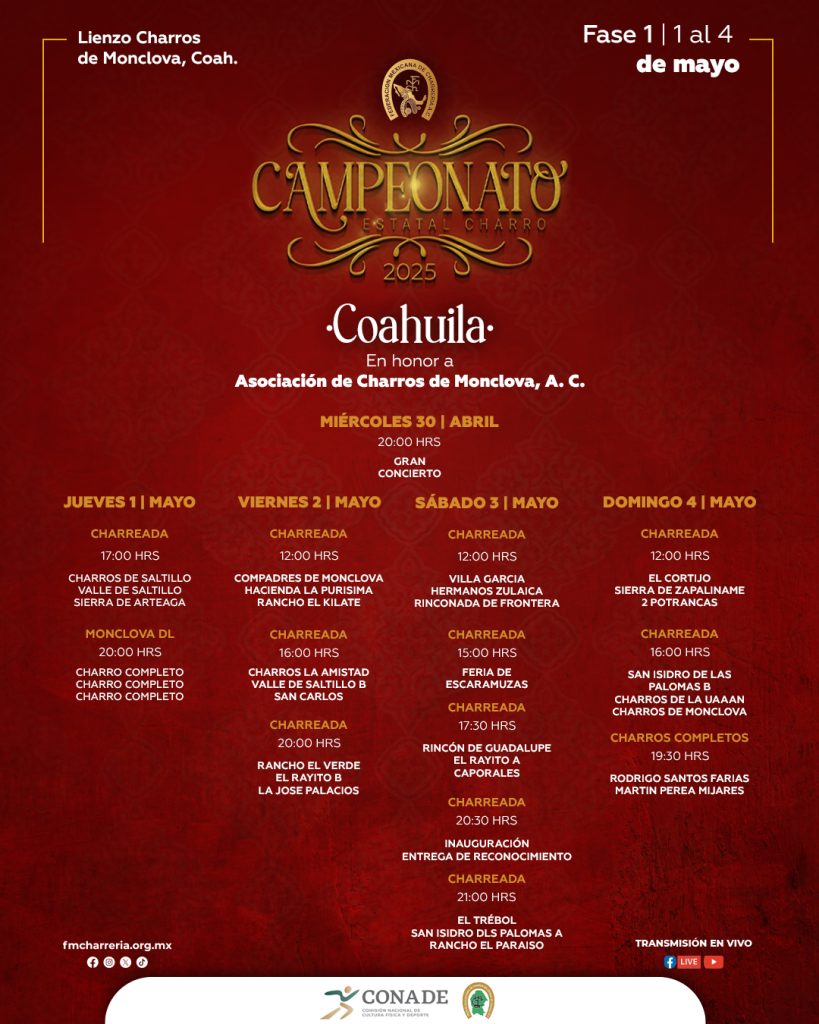 <!-- wp:separator --> <hr class="wp-block-separator has-alpha-channel-opacity"/> <!-- /wp:separator --> <!-- wp:image {"id":26768,"sizeSlug":"large","linkDestination":"none","align":"center"} --> <figure class="wp-block-image aligncenter size-large"><img src="https://fmcharreria.org.mx/wp-content/uploads/Coahuila-EST2025-Programa-819x1024.jpg" alt="" class="wp-image-26768"/></figure> <!-- /wp:image --> <!-- wp:separator --> <hr class="wp-block-separator has-alpha-channel-opacity"/> <!-- /wp:separator -->