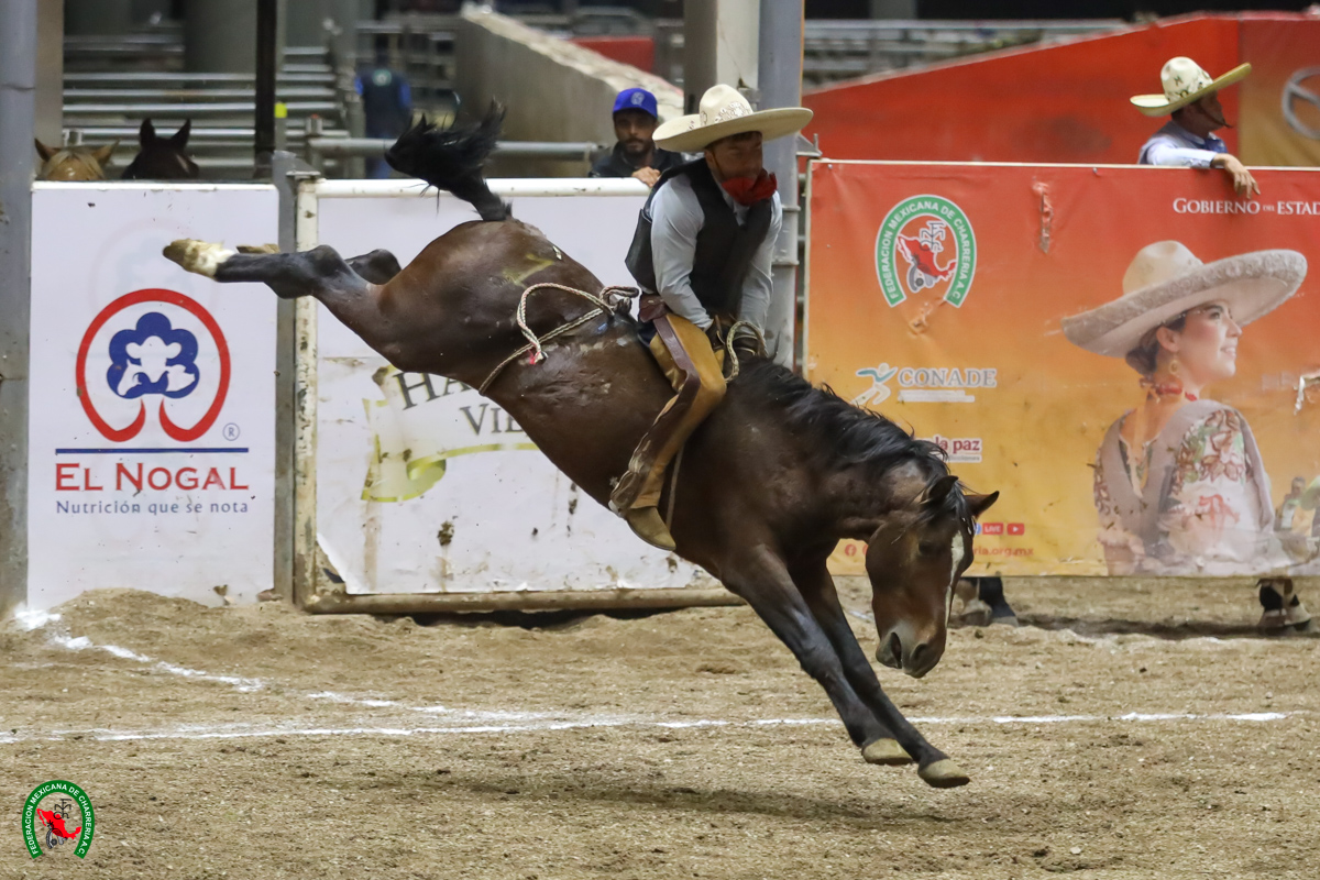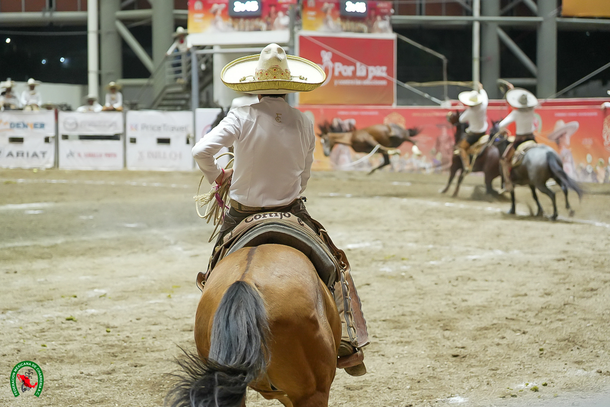 La monta de yegua de José David Banda Gallegos fue calificada con 11 unidades, y si bien Gerardo Salinas Becerra logró una mangana a pie de 24 de contrarrodada encontrada, él mismo se sacó la espina al cuajar las tres a caballo, por las cuales totalizó 74 buenos, con remates de máscara, bigotona y de espaldas a la yegua, concluyendo con los 13 del paso de la muerte de José David Banda Gallegos, ejecutado en la segunda vuelta, para finalizar con sus 326 puntos.