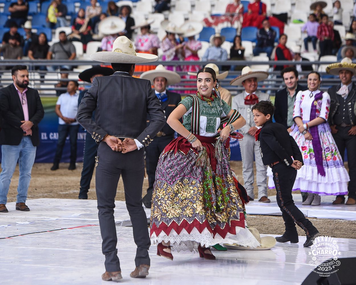 Uno de los momentos más representativos fue la participación del joven homenajeado, José Andrés “Chiringas” Aceves Aceves, quien realizó una exhibición de floreo de salón mientras las reinas charras, SGM Natalia I y SGM Valentina I, esta última reina de las categorías infantiles y juveniles, ejecutaban el tradicional baile del Jarabe Tapatío, en un cuadro de mucha alegría y color.