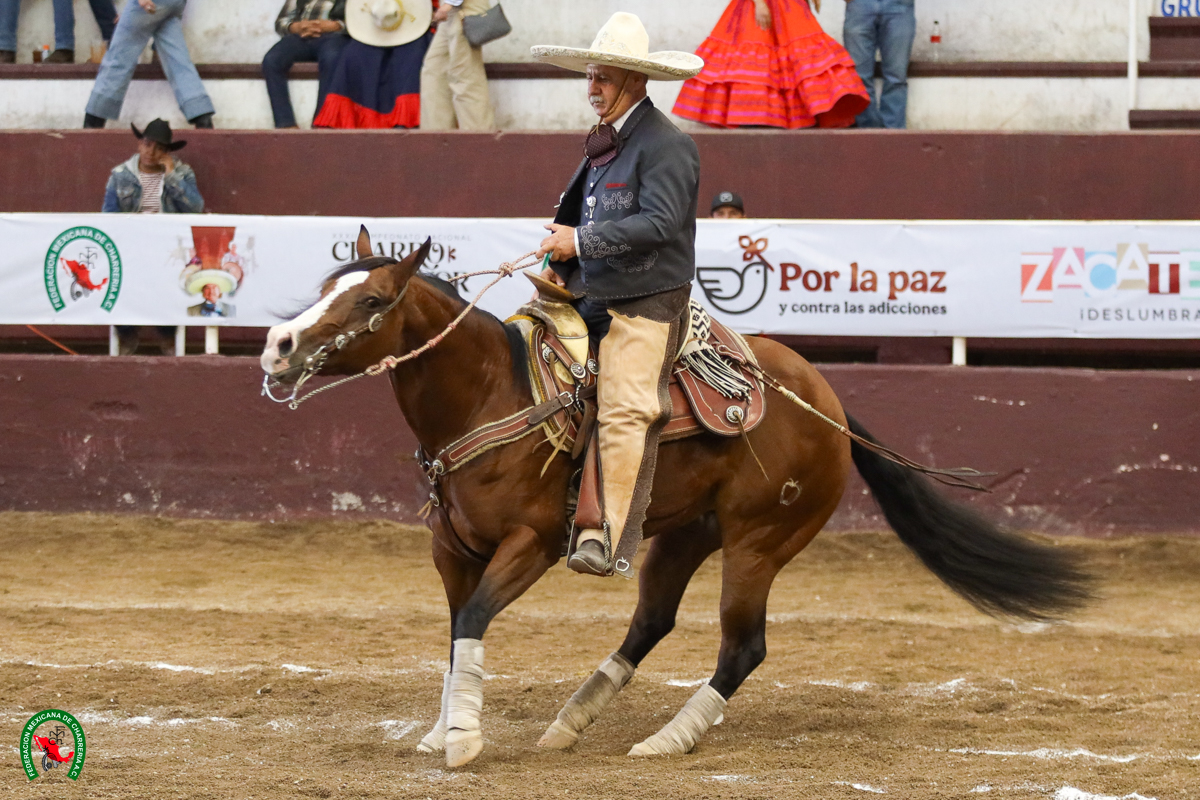 Noé Alcaraz Vidal, de Guanajuato, sumó de igual forma 37 unidades de su cala de caballo, dos negativos en los piales, teniendo dos colas de cuenta y 17 tantos; además agarró una mangana a pie de 27 y otra a caballo de 24, con lo cual finalizó con 103 puntos.