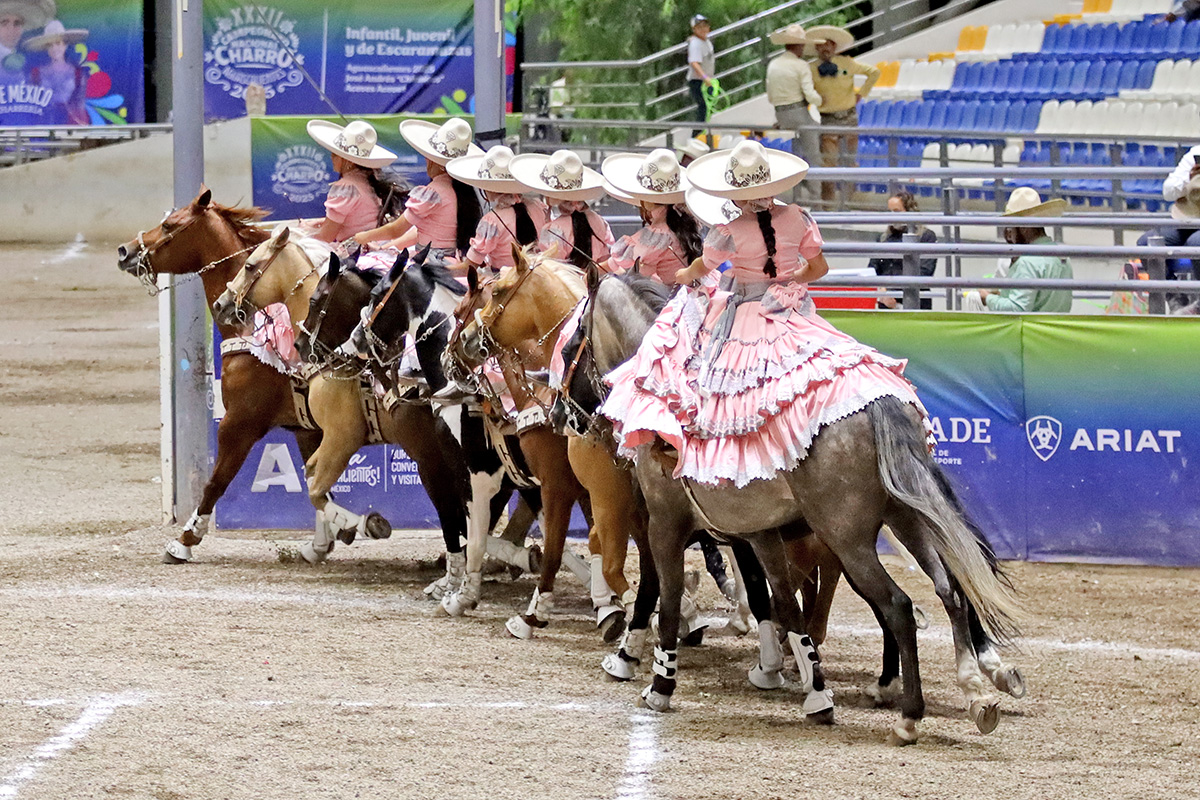 La rama femenil también registró actuaciones destacadas. En la categoría Infantil “A”, las Palomas de Aguascalientes se colocaron en la cima del clasificador con 244.33 puntos, ante el júbilo del público que reconoció su elegancia y destreza en el ruedo.
