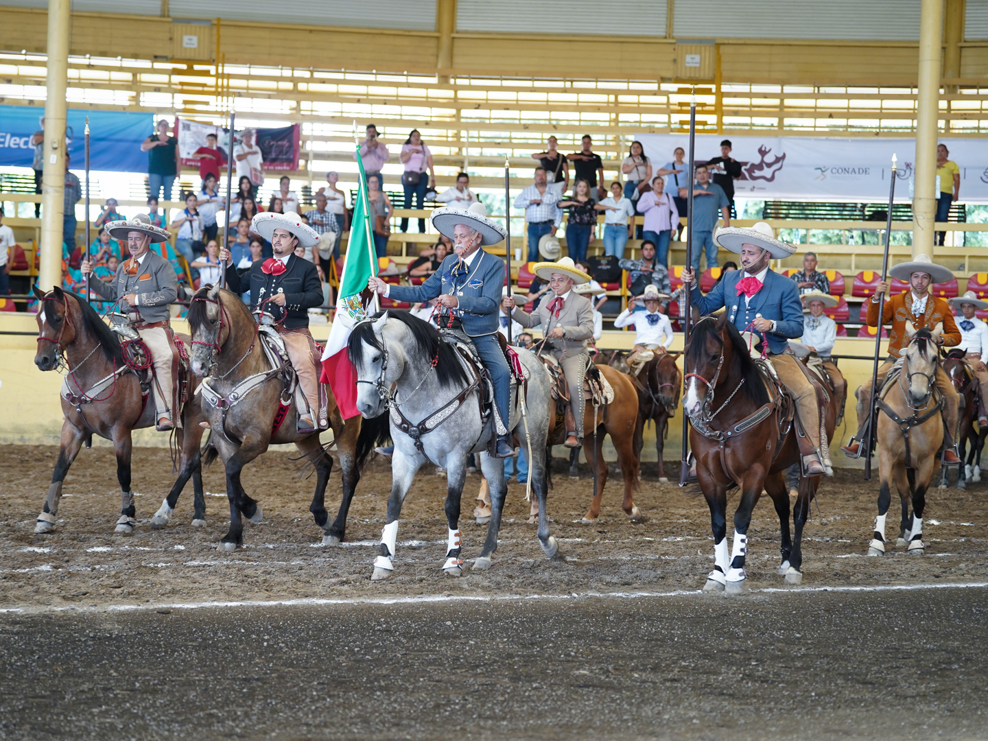 El acto inaugural contó con la presencia de directivos de la Comisión Nacional de Cultura Física y Deporte (CONADE), así como de la Federación Mexicana de Charrería, quienes encabezaron el protocolo con los honores al lábaro patrio, cuya escolta estuvo conformada por José Luis Ibarra Navarro, Luis Manuel Martín Ibarra, Miguel Ibarra Casillas, Manuel Martín, Jalil Dulac Camacho y Ricardo Azuela.