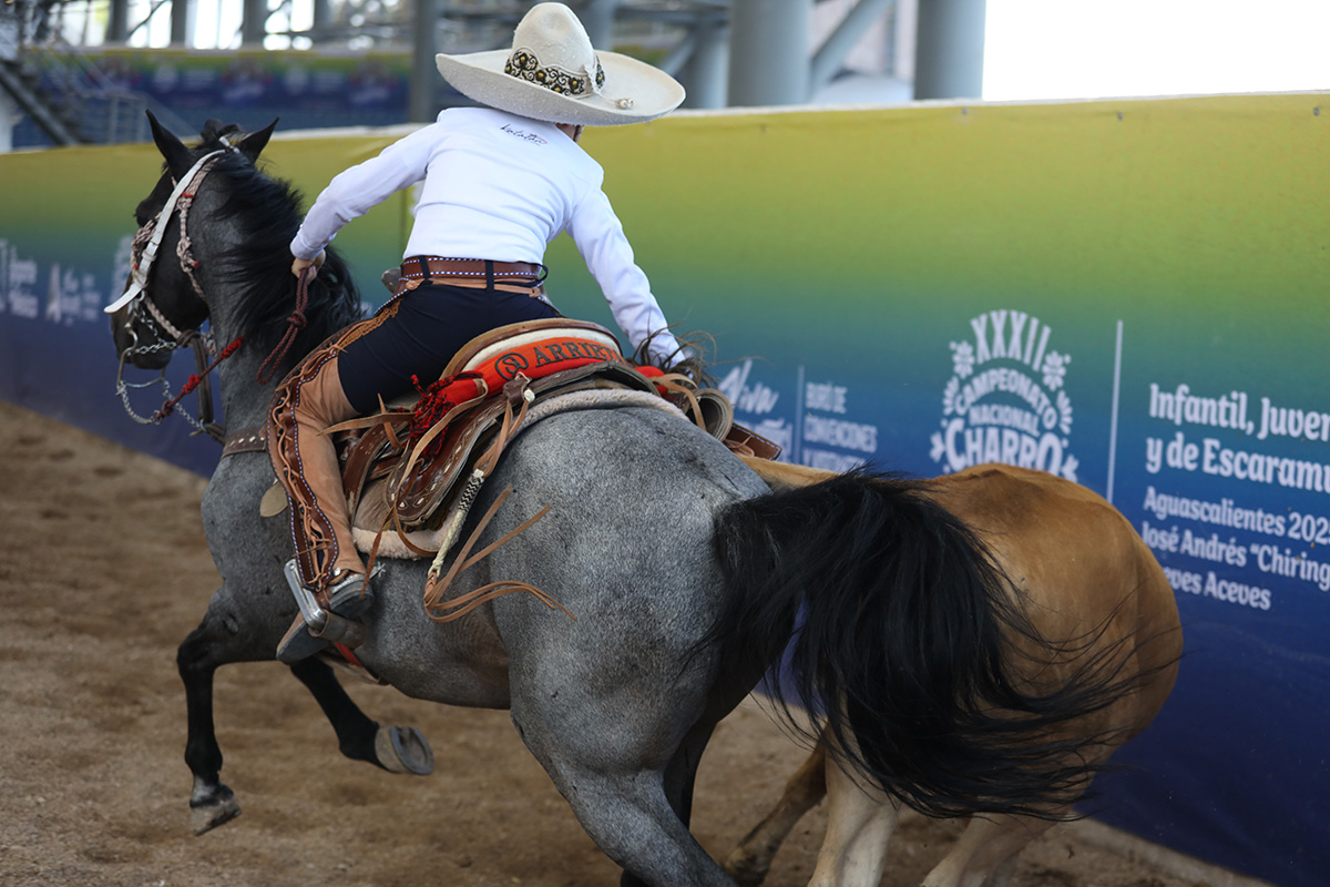 Este jueves se celebró la primera charreada correspondiente a la cuarta competencia eliminatoria en la categoría Dientes de Leche, dentro del marco del XXXII Campeonato Nacional Charro Infantil, Juvenil y de Escaramuzas 2025 “José Andrés ‘Chiringas’ Aceves Aceves”, que se desarrolla en la emblemática Arena San Marcos de Aguascalientes.
