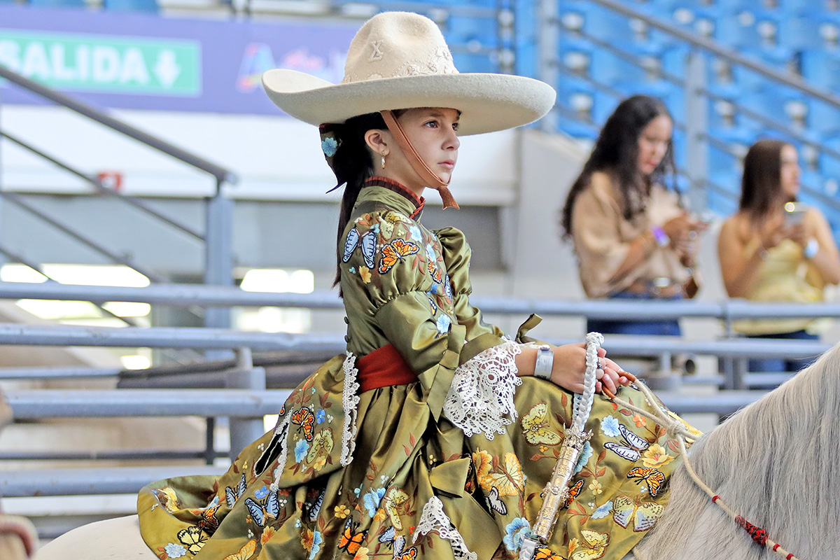 Y las pequeñas Adelitas de Villa de Álvarez, Colima, llenaron de alegría y color el ruedo de este escenario al participar en la categoría Dientes de Leche, donde obtuvieron una calificación final de 106.00 unidades.