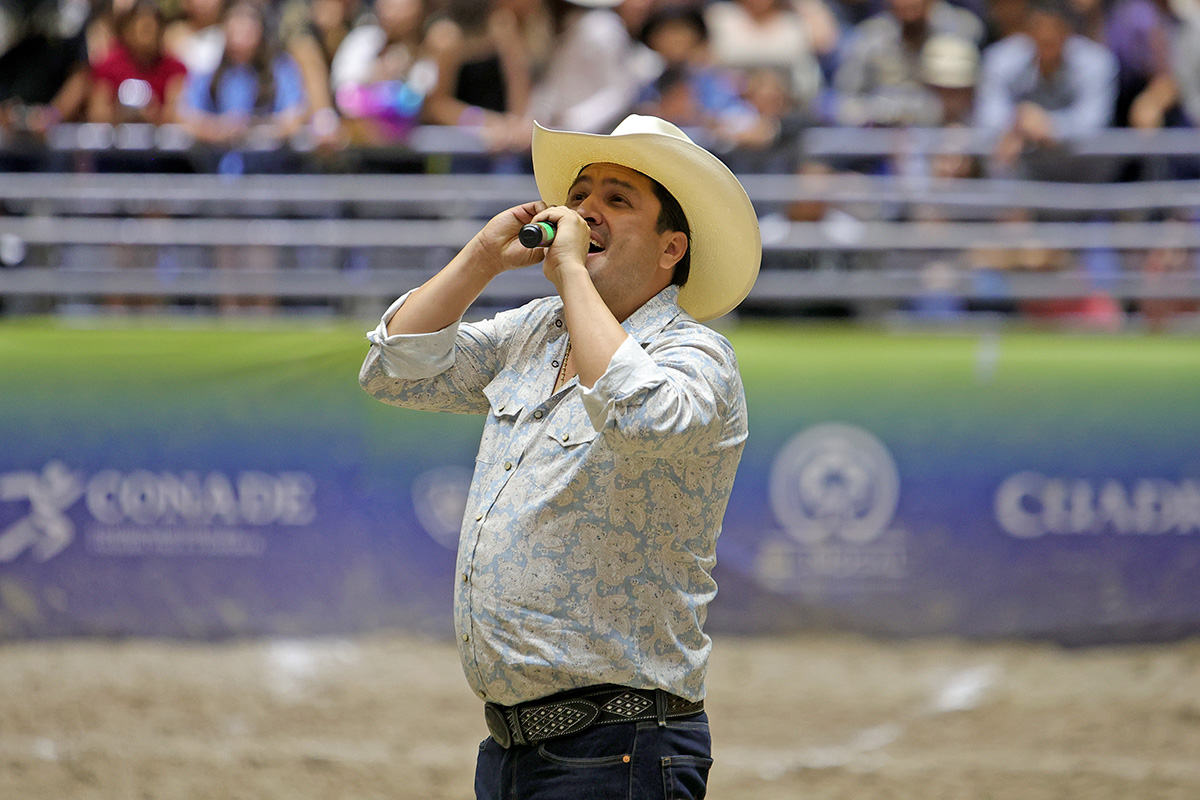 Una tarde inolvidable se vivió en la Arena San Marcos durante el XXXII Campeonato Nacional Charro Infantil, Juvenil y de Escaramuzas “José Andrés ‘Chiringas’ Aceves Aceves”, donde el popular cantante Julión Álvarez se presentó para apoyar a sus pequeñas hijas, quienes participaron con la escaramuza Alteñitas Dientes de Leche de Jalisco.