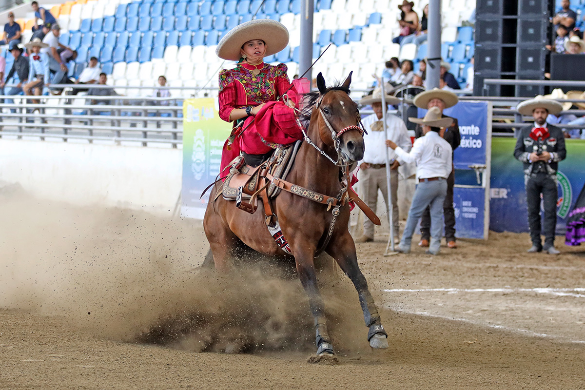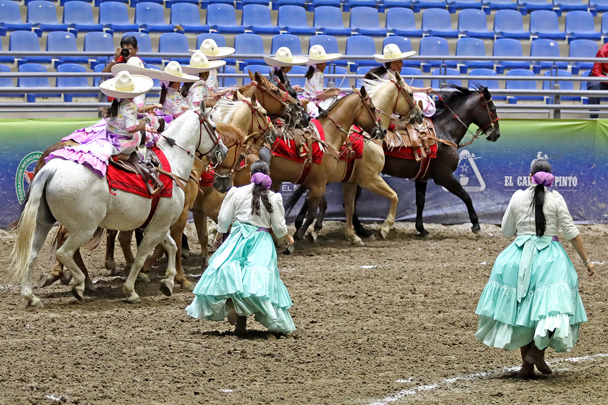 Este pequeño ramillete de damitas charras forma parte de la asociación Rancho El Porvenir de Chihuahua, y con la música del Balajú actuaron las amazonas Gabriella Regina Moriel Abes, Romina Abes Flores, Elisa Jurado Pérez, Valentina y Carolina Rico Jurado, Georgina Martínez Herrera y Aitana Sofía Moreno Ramírez.
