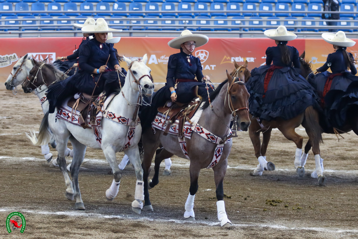 En el apartado femenil, la escaramuza Las Palomas de Aguascalientes, con su actuación, se colocó en el segundo lugar general con 305.50 unidades, sólo por debajo de escaramuza Reencuentro de Chihuahua que registró 312.00 buenos el domingo; Villa Oro de Querétaro, por otro lado, en esta ocasión cerró con 274.50 tantos.