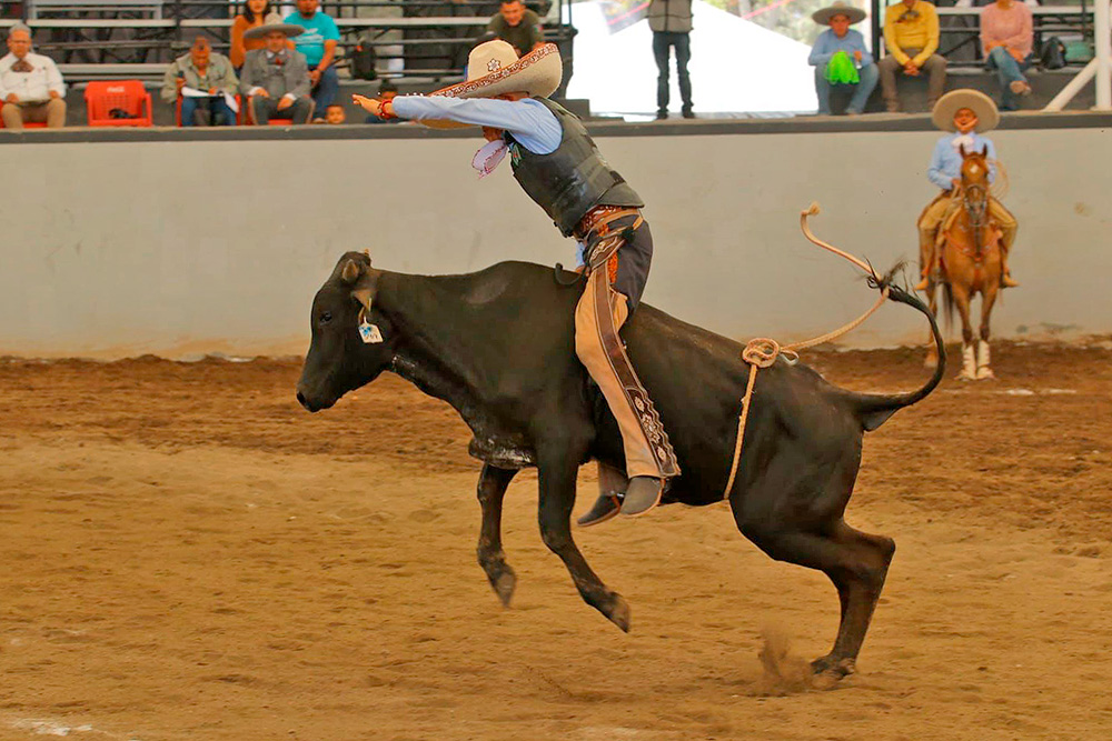 Luis Antonio Rivera López, de Rancho El Soyate de Zacatecas, concluyó su presentación también con 143 puntos, pero teniendo nueve de infracción. Sumó 25 en cala, sin piales, coleó para 19, no tuvo buenos en la monta de toro, pero acertó dos manganas a pie para 50 y una a caballo para 27, cerrando con 22 del paso de la muerte.