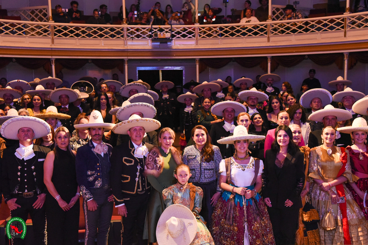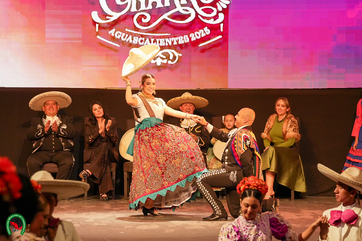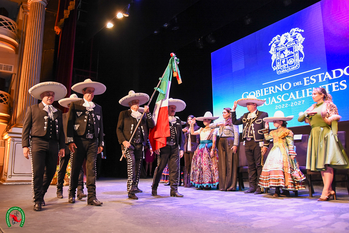 Este acto estuvo encabezado, además de la mandataria estatal, por el presidente de la Federación Mexicana de Charrería, Salvador Barajas del Toro, quien estuvo acompañado por su distinguida esposa, Ana Cristina Ortega, y su hija Valentina; SGM Natalia I, reina nacional de la Federación; Verónica González, directora general del Buró de Congresos y Visitantes del Estado de Aguascalientes, y el presidente de la Unión de Asociaciones de Charros de esta entidad, Gustavo Jiménez Castillo.