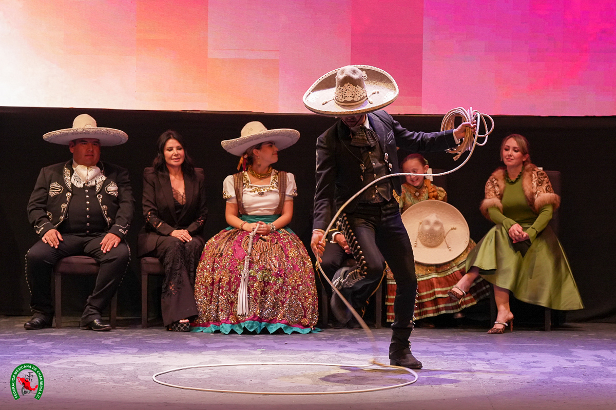 Posteriormente, el acreditado charro Ricardo Zamudio Romero realizó una exhibición de floreo de salón, acompañado por un magnífico mariachi, el cual interpretó el Son de la Negra.