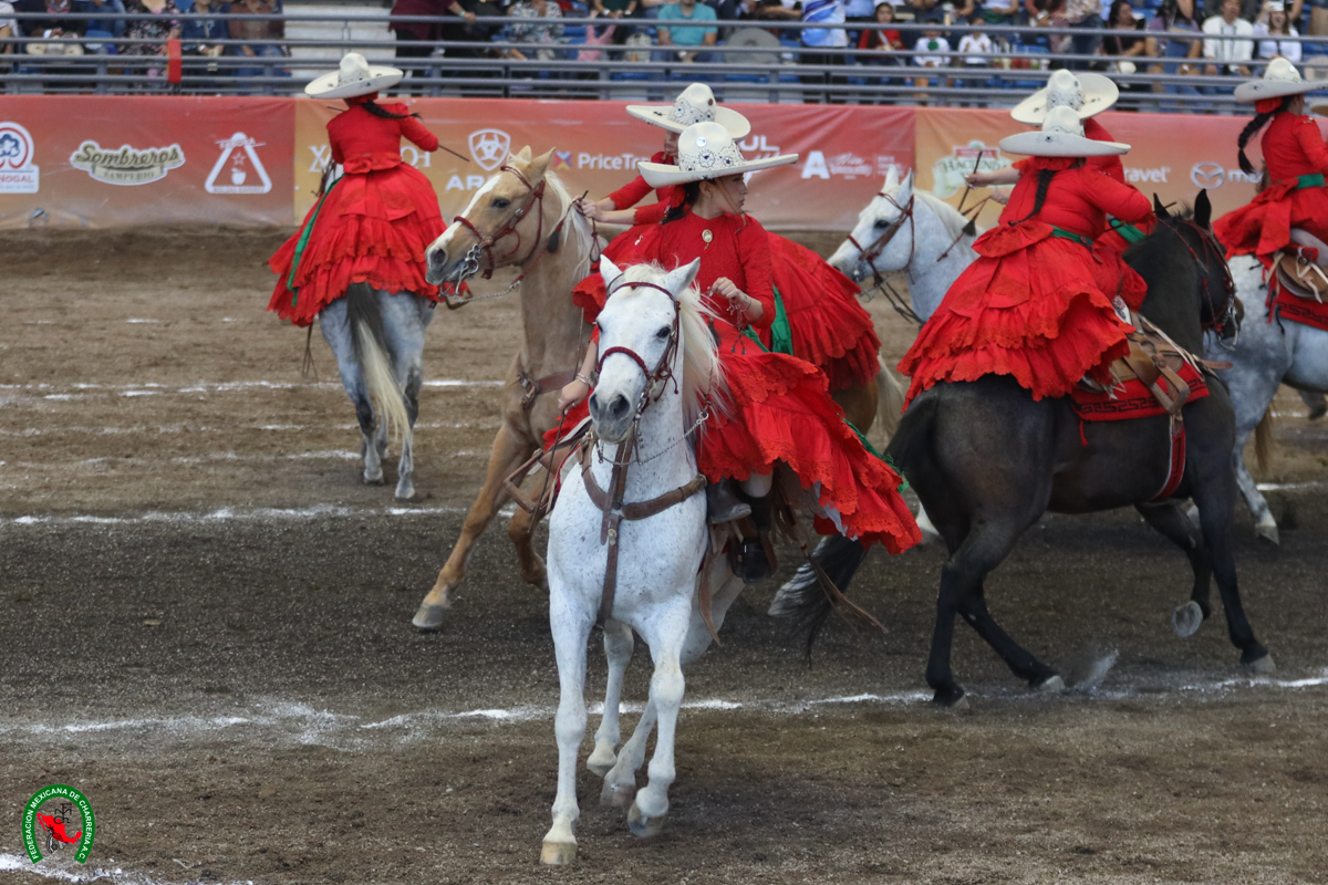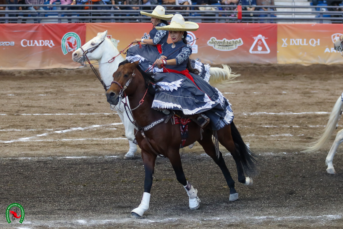 Tierra Azteca de Texas fue la mejor de la charreada de la tarde en el rubro de escaramuzas con 240.50 bonos y Hacienda La Victoria, que realizó el viaje desde California, realizó la actuación con mucho corazón para 225.00 unidades.