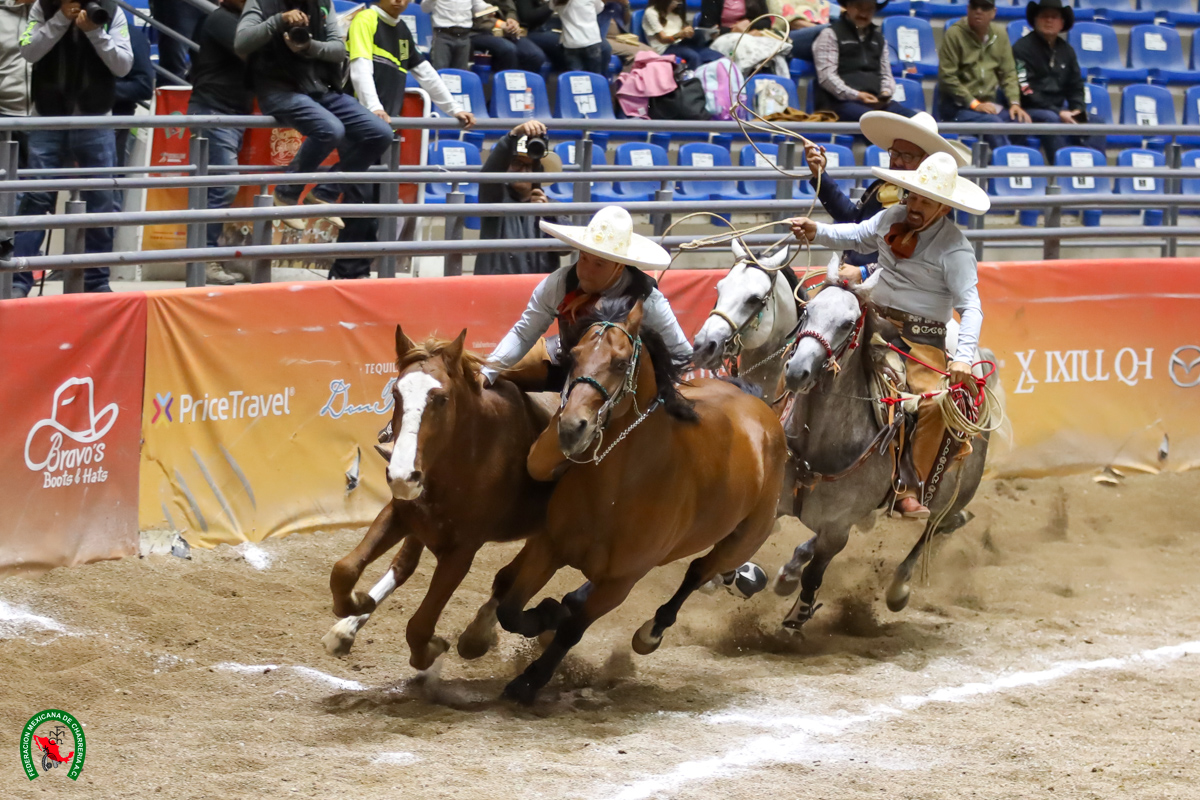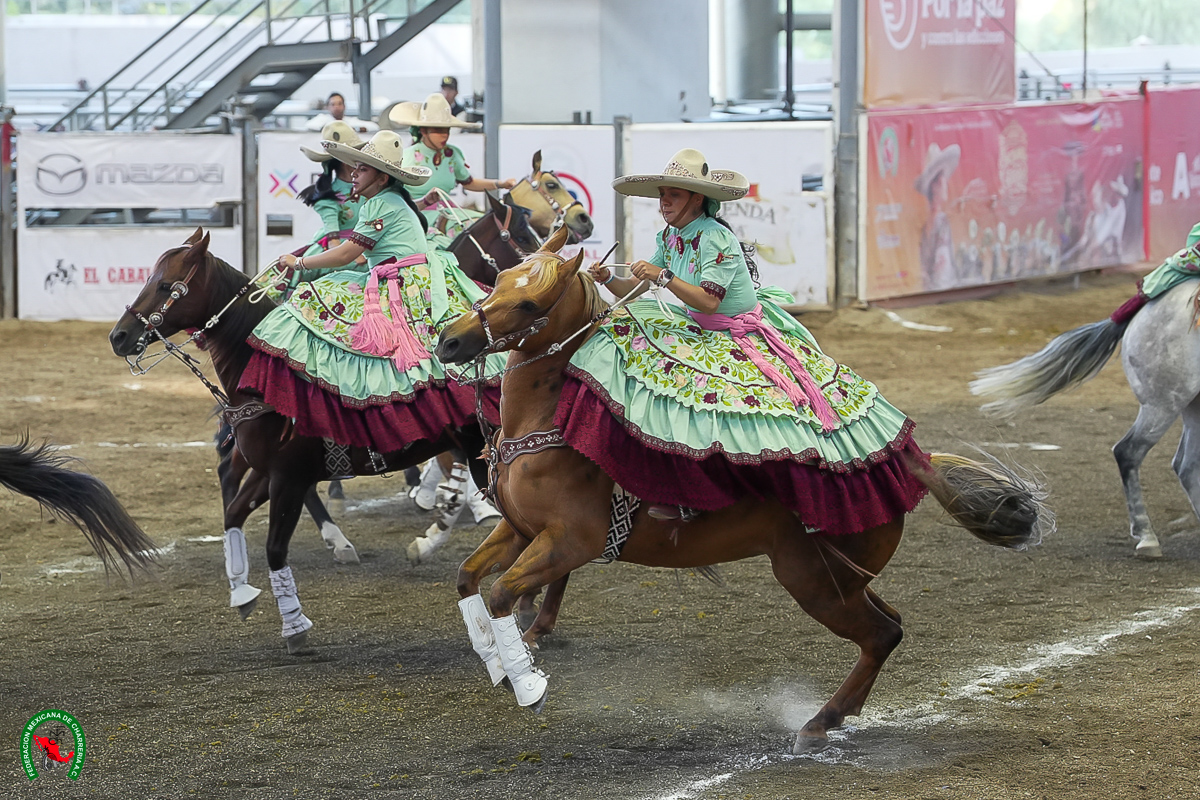 Por la noche, la única escuadra femenil en competir fue Charra de Monterrey, Nuevo León, capitaneada por Tamara Elizondo González, quien ejecutó una de las puntas, siendo la otra de Nataly Espinoza Elizondo, logrando 22 unidades de su labor.
