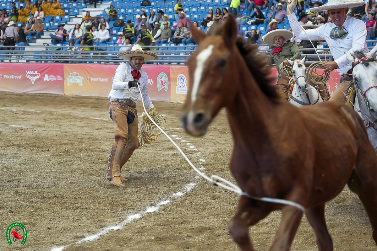 La escaramuza Rancho El Herradero “Juvenil”, de la Escuela Municipal de Charrería de Tlajomulco de Zúñiga, Jalisco, arrancó con buena participación en las puntas que ejecutaron Denisse Alejandra Carreón Bailón, con marca de 16.10 metros en cuatro tiempos, y especialmente la capitana Andrea Ruiz Ibarra, cuya cabalgadura dejó 18.90 metros en dos tiempos, obteniendo 20 unidades.