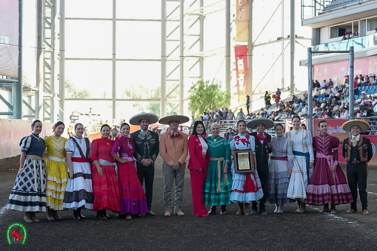 Además, en el ruedo y atestiguando la directora general del Buró de Congresos y Visitantes, Verónica González, se realizó un homenaje a las integrantes de la escaramuza Alteñitas de Guadalajara, por su amplia trayectoria que han realizado en la charrería femenil, un legado de familia y que trasciende de generación en generación en el corazón de Jalisco.