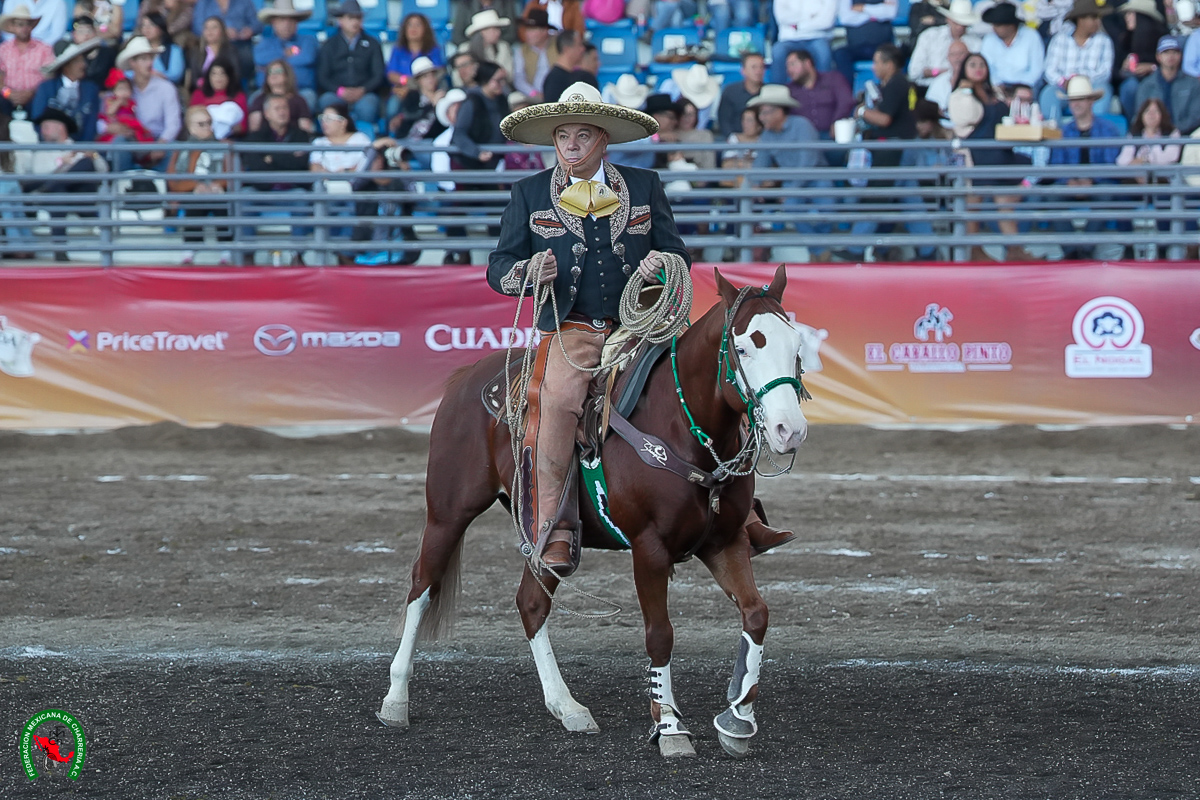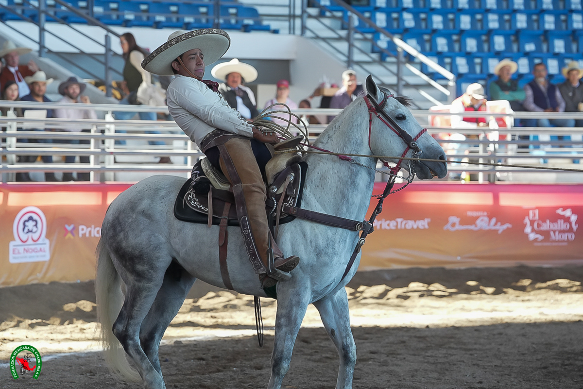 Enrique Miguel Jiménez Martínez, elemento de El Soyate de Zacatecas, lució una muy buena cala de caballo de 43 unidades, más dos pialazos en el lienzo de 22 tantos cada uno, para notar 44; en el coleo, falló la primera oportunidad, pero derribó de medias derechas en las dos restantes, acumulando 18 unidades.