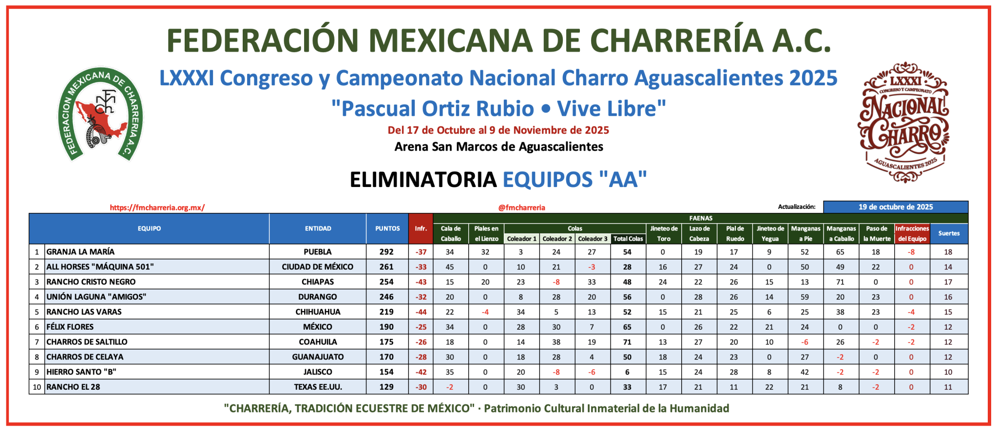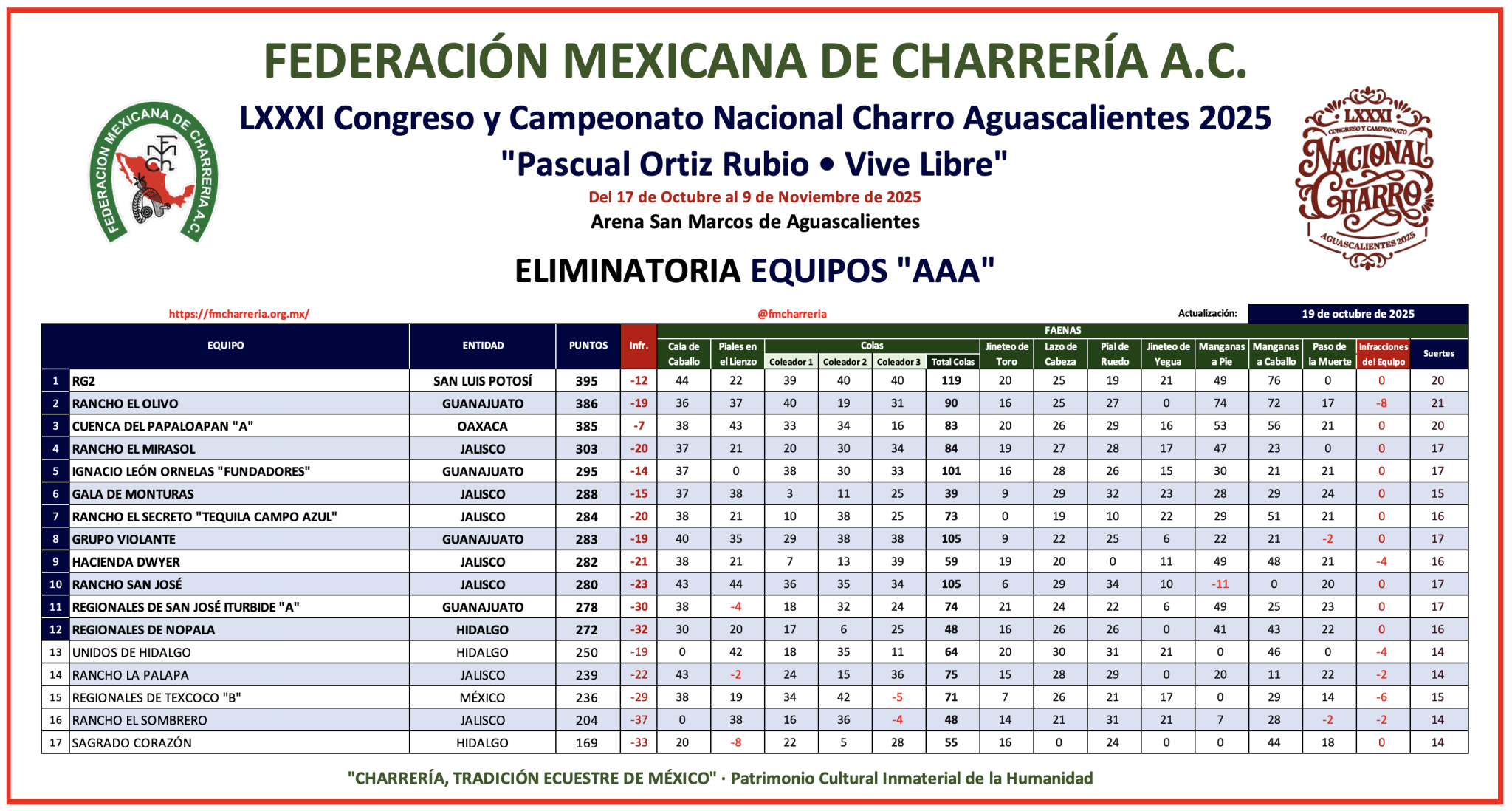 La última charreada de este domingo en la Arena San Marcos de Aguascalientes demostró que las manganas dan y quitan a los elencos que compiten con pundonor, aunque no siempre con fortuna, en la naciente etapa eliminatoria del LXXXI Congreso y Campeonato Nacional Charro Aguascalientes 2025 “Pascual Ortiz Rubio – Vive Libre”.