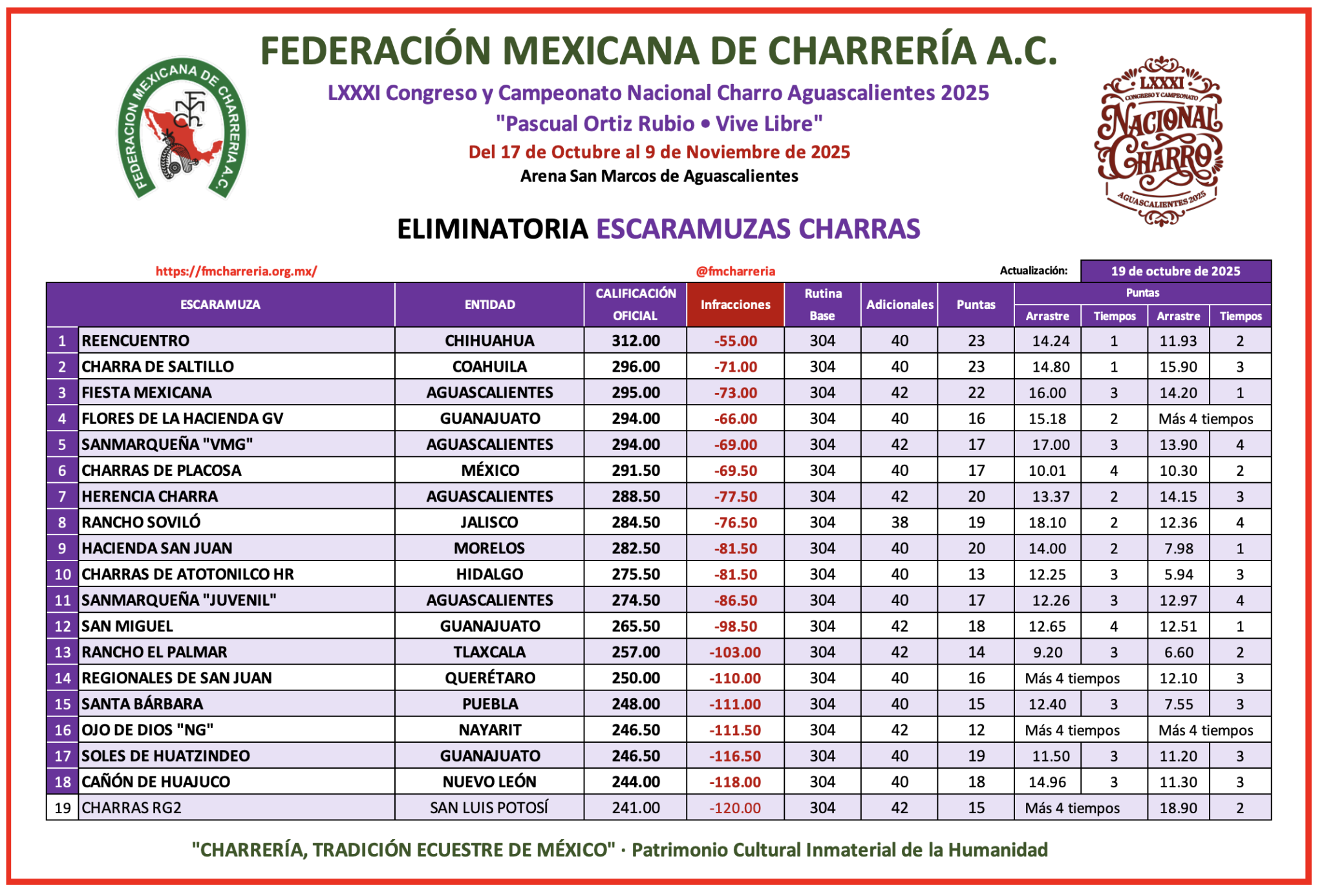 Junto a ellos, la agrupación Félix Flores de Texcoco, Estado de México, participó encuadrada en el sector “AA”, y en esta novena competencia eliminatoria concluyó con marca de 190 buenos que, de momento, le mantiene en la sexta casilla de su respectiva tabla clasificatoria.