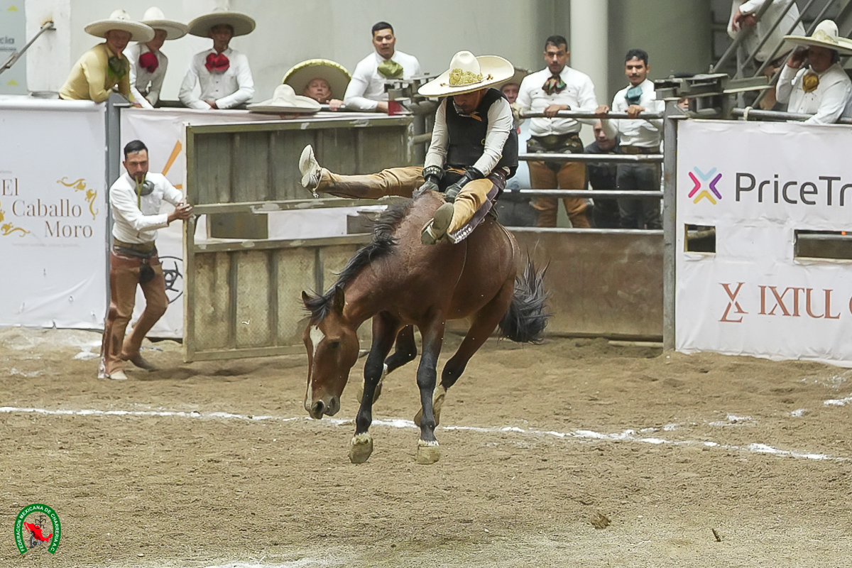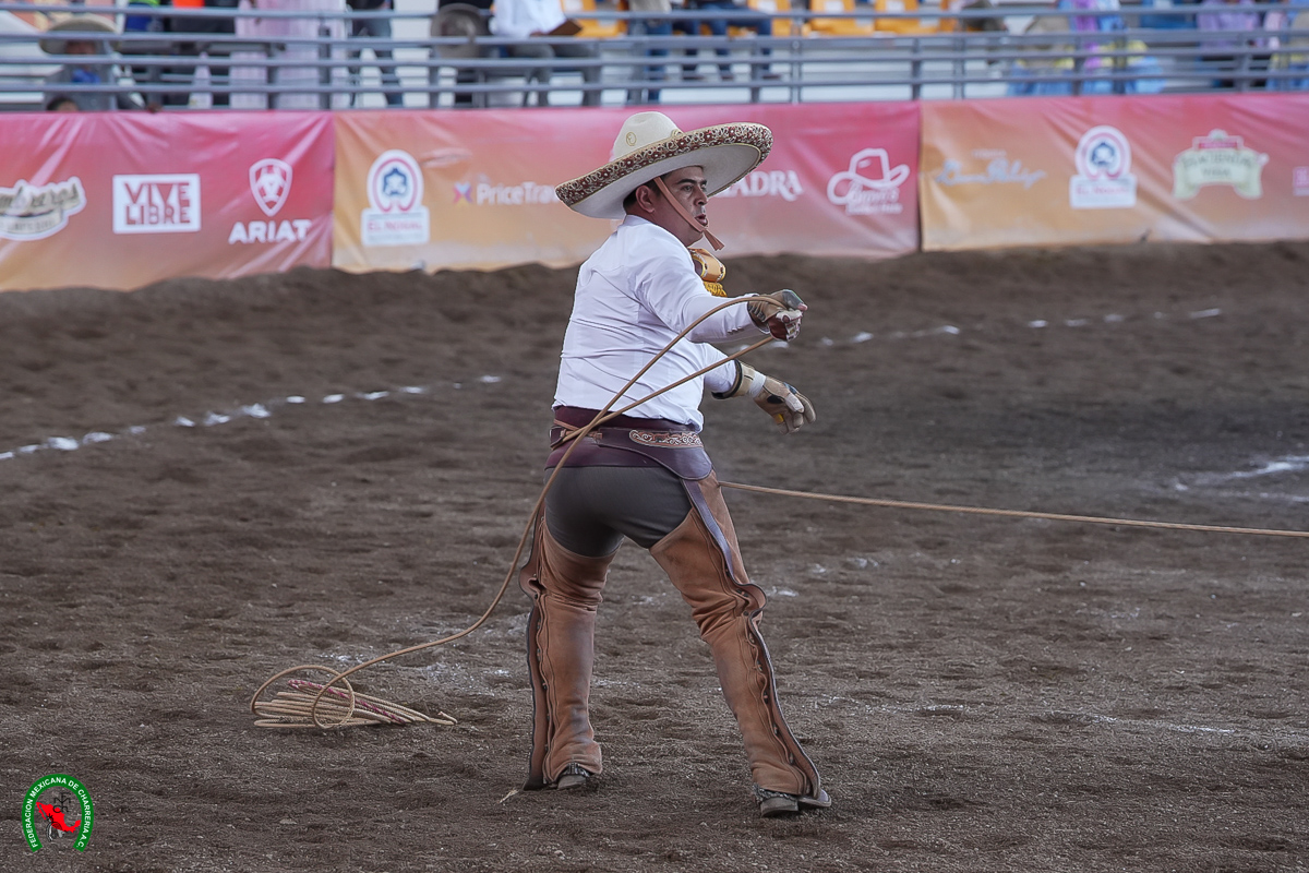 Ya en el ruedo, Jacobo Axel González Veloz logró monta de toro de 17 buenos, lazo cabecero de 29 de Enrique Ramírez Pérez y pialazo de ruedo de 30 de Luis Enrique Ramírez Pulido, con tres minutos del tiempo no utilizado.