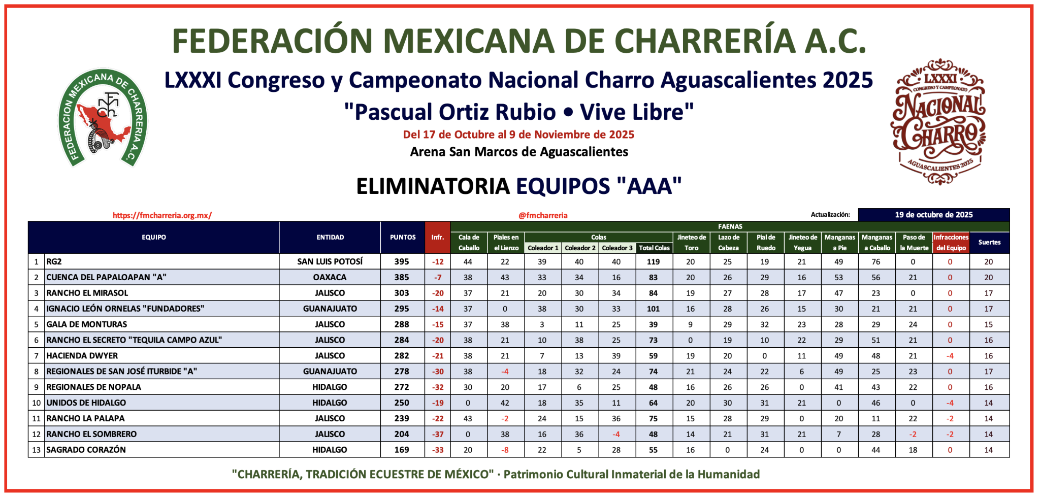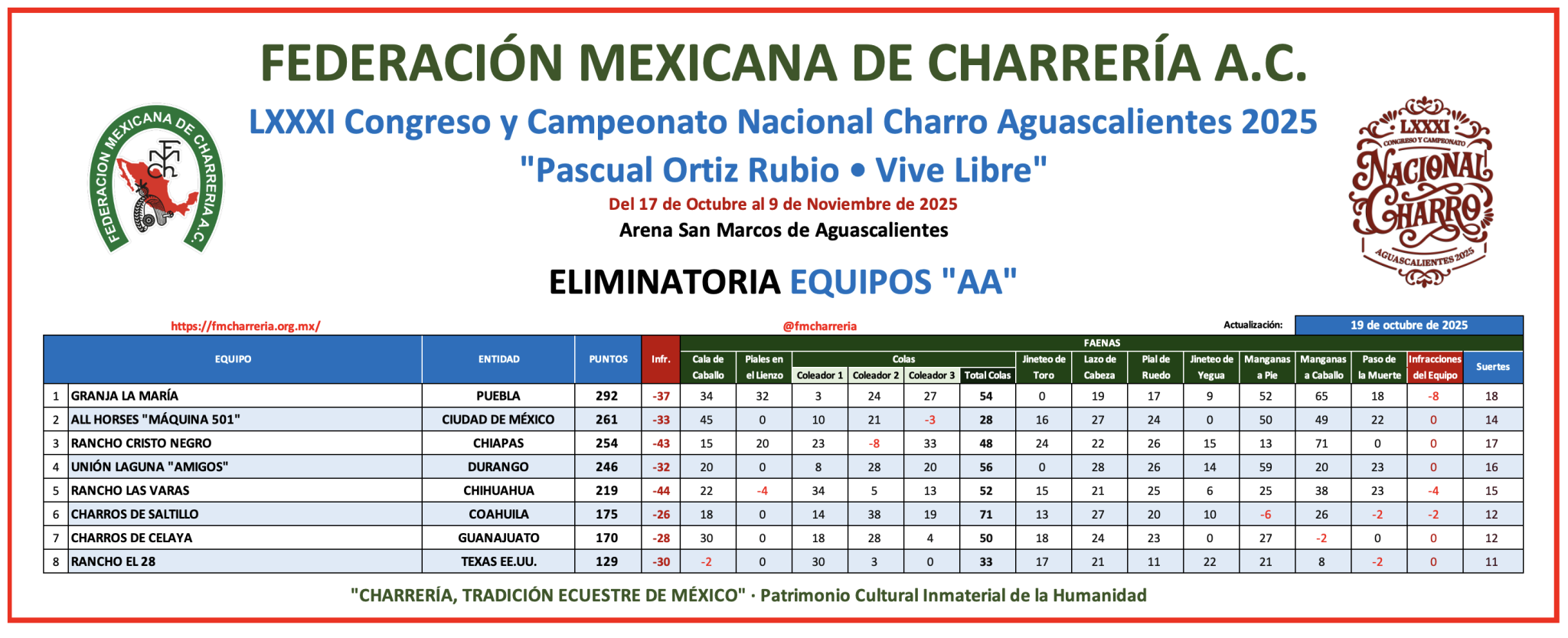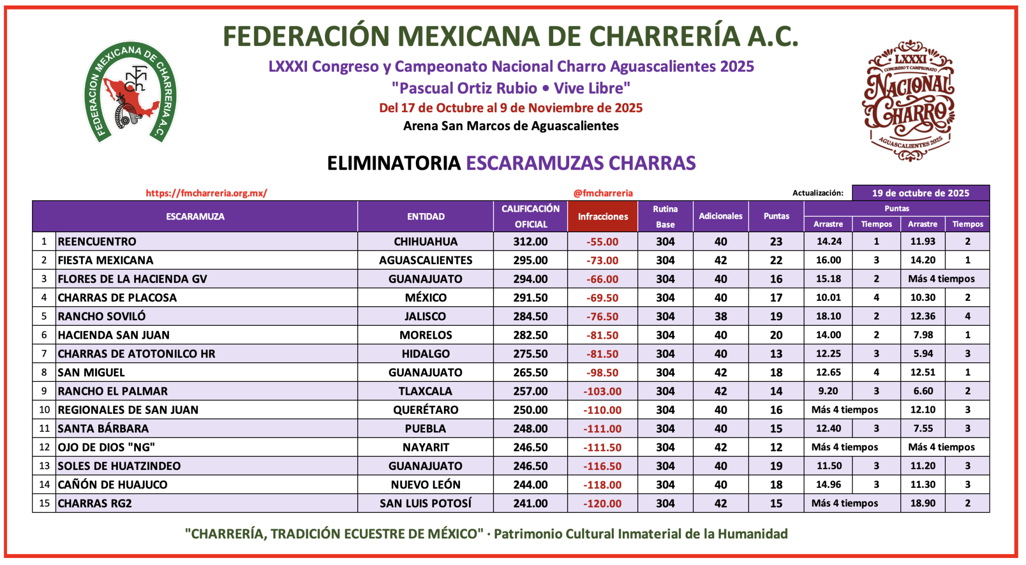 En contraste, los Unidos de Hidalgo, también de categoría “AAA”, tuvieron que remar contracorriente tras la descalificación de la cala de caballo, y aunque acertaron dos piales y dos manganas a caballo, finalizaron con 250 puntos, con pocas opciones de clasificar a la etapa de semifinales.