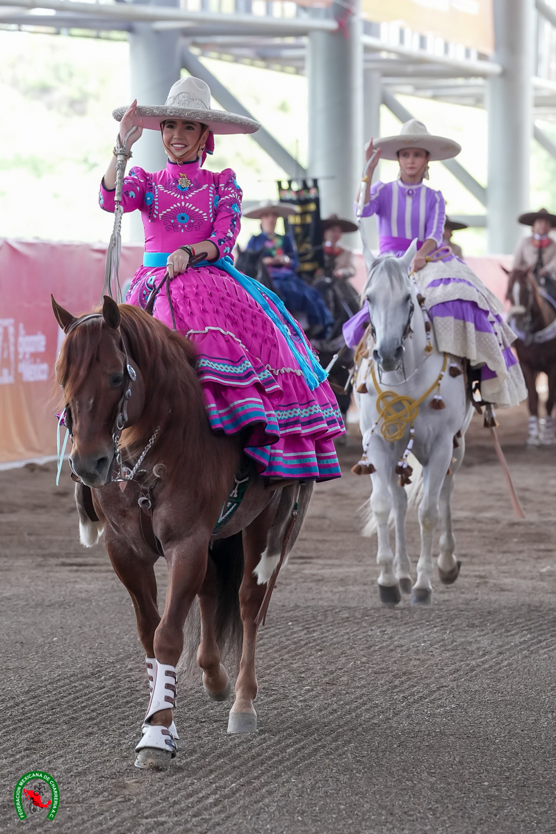 La escaramuza Reencuentro, con dos títulos nacionales en su haber (Tepic 2013 y San Luis Potosí 2024), brilló en el ruedo bajo la dirección de su capitana, Catalina Quiroga González. Destacaron las puntas de Liliana Treviño Valdez y Valeria Treviño Solís, sumando 23 buenos y logrando la menor cantidad de infracciones hasta el momento (55 malos). Así, Reencuentro se convierte en la primera escaramuza en superar la barrera de los 300 puntos, liderando en solitario con 312.00 unidades.