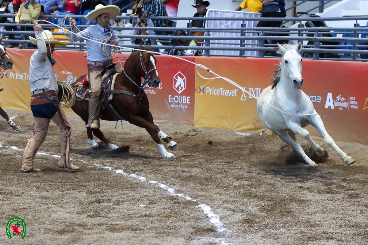 Tampoco tuvieron fortuna los jaliscienses de Hierro Santo “B”, quienes debieron sortear una tarde cuesta arriba en las tres primeras faenas de la charreada, y gracias a una decorosa labor en terna y dos manganas acertadas por Iván Barba Aceves, concluyeron con 154 puntos, válidos por la categoría “AA”.