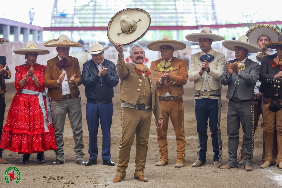 La ceremonia estuvo encabezada por Salvador Barajas del Toro, presidente de la Federación, y Rafael Mansur Oviedo, secretario General; se sumaron a la comitiva institucional el coordinador Nacional de Charros Mayores, Gerardo Rico Cázares, y la coordinadora Nacional de Escaramuzas, Silvia Rodríguez Rodríguez.