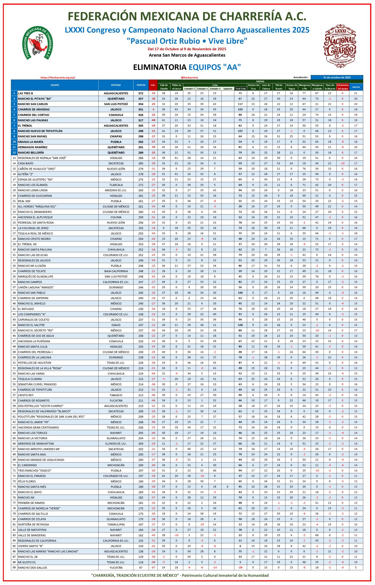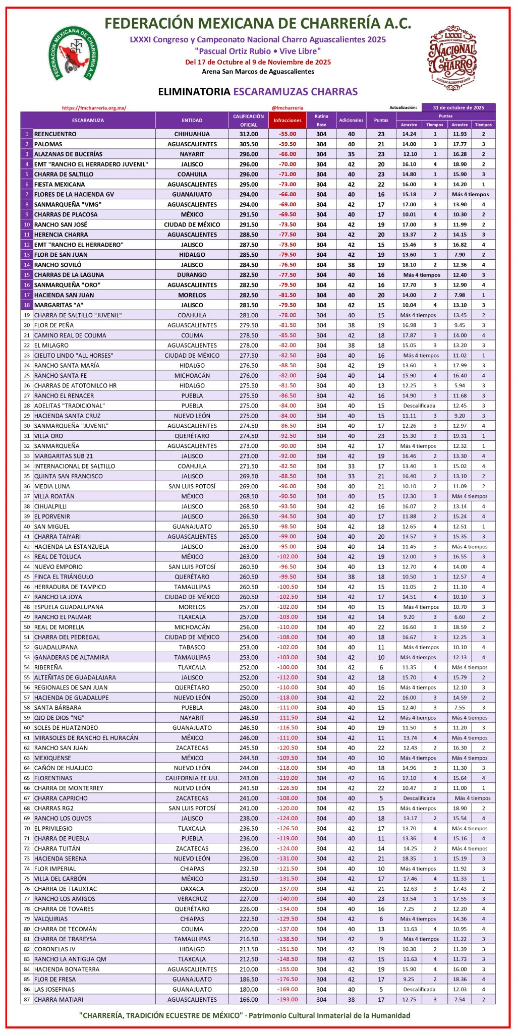 Esta misma competencia, los Potrillos de Houston, Texas, concluyeron su presentación con un total de 226 unidades, al tiempo que Rancho Dos Potrillos de Yucatán tuvieron que sortear una tarde bastante complicada al cerrar con 47 puntos.