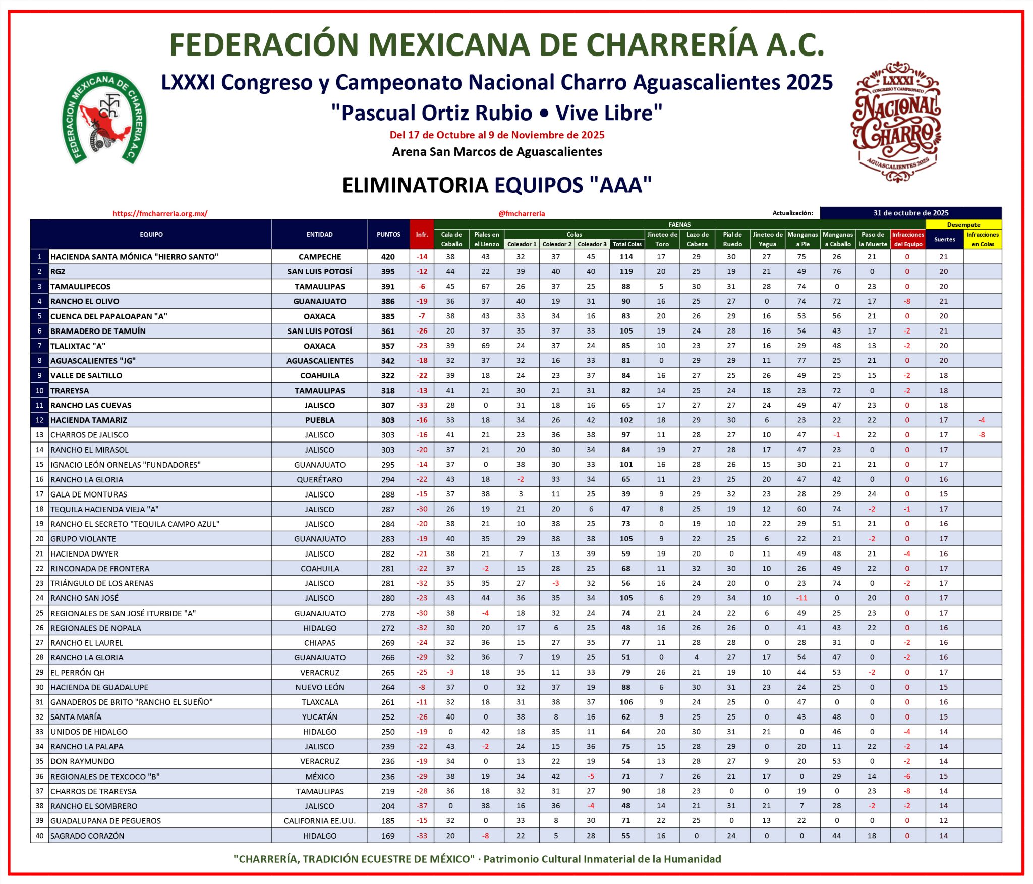 Tequila Hacienda Vieja “A” vivió una tarde de claroscuros en la Arena San Marcos, al llevarse el primer duelo de esta jornada de viernes en el LXXXI Congreso y Campeonato Nacional Charro Aguascalientes 2025 “Pascual Ortiz Rubio – Vive Libre” pues, tras levantarse con seis manganas, se les escapó cualquier opción de clasificar en la categoría “AAA” al quedarse con 287 puntos.